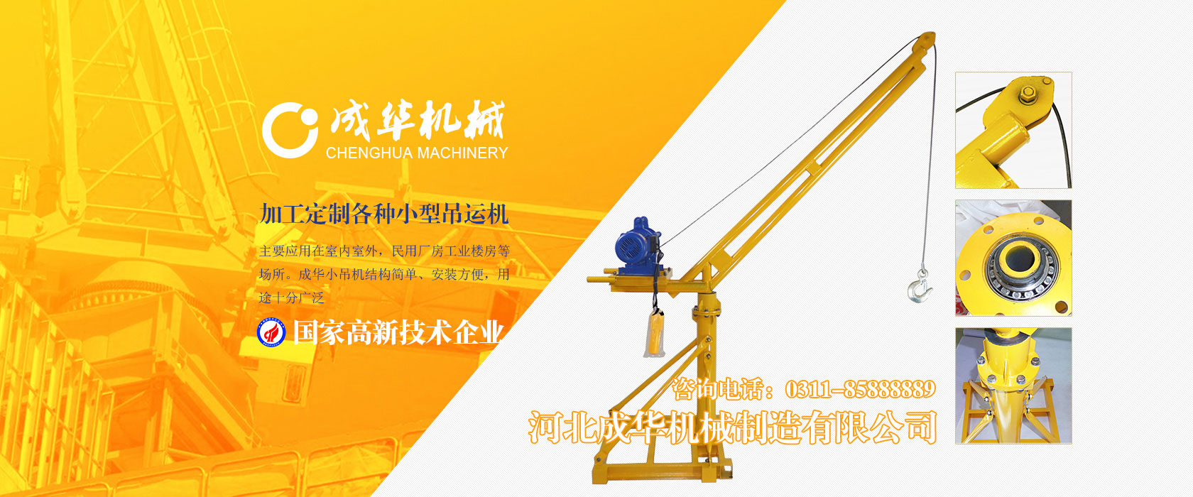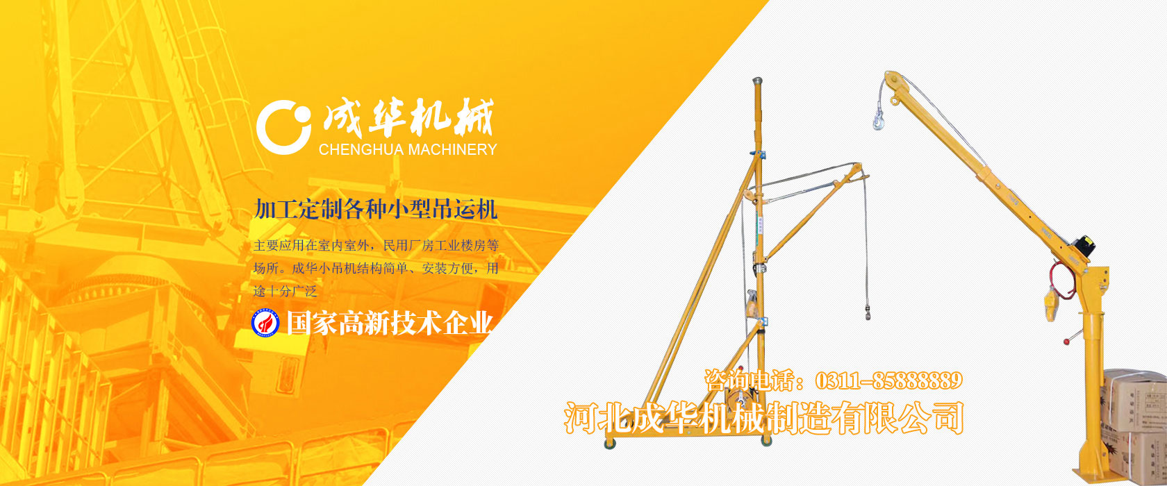 河北成華機(jī)械制造有限公司為國家高新技術(shù)企業(yè),旗下吊運機(jī)制造廠是家專業(yè)生產(chǎn)制造便攜式小吊機(jī)、手提式小吊機(jī)附屬工廠,我廠產(chǎn)品主要應(yīng)用在室內(nèi)室外,民用廠房工業(yè)樓房等場所。成華小吊機(jī)結(jié)構(gòu)簡單、安裝方便,用途十分廣泛,小吊機(jī)產(chǎn)品被廣泛應(yīng)用于機(jī)械制造、電子、汽車...